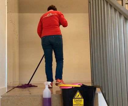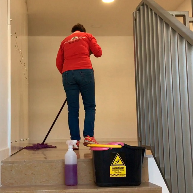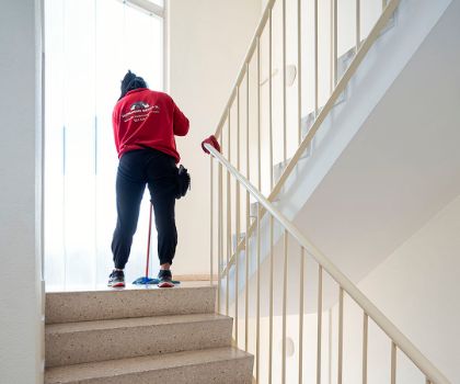 Limpieza de áreas comunes como pasillos, escaleras y portales, manteniendo la higiene de zonas compartidas.