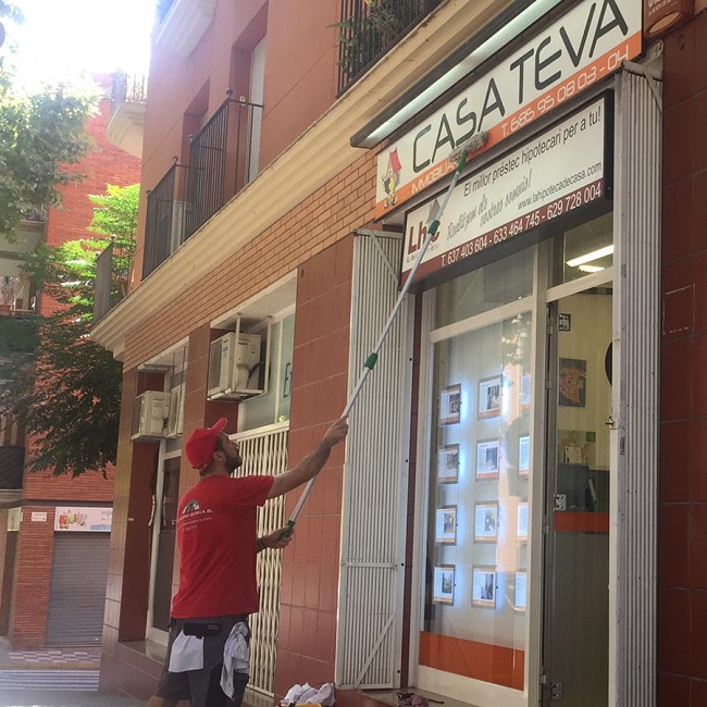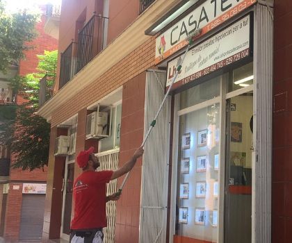 Limpieza y pulido de cristales, vidrios y ventanales, tanto en exteriores como interiores.