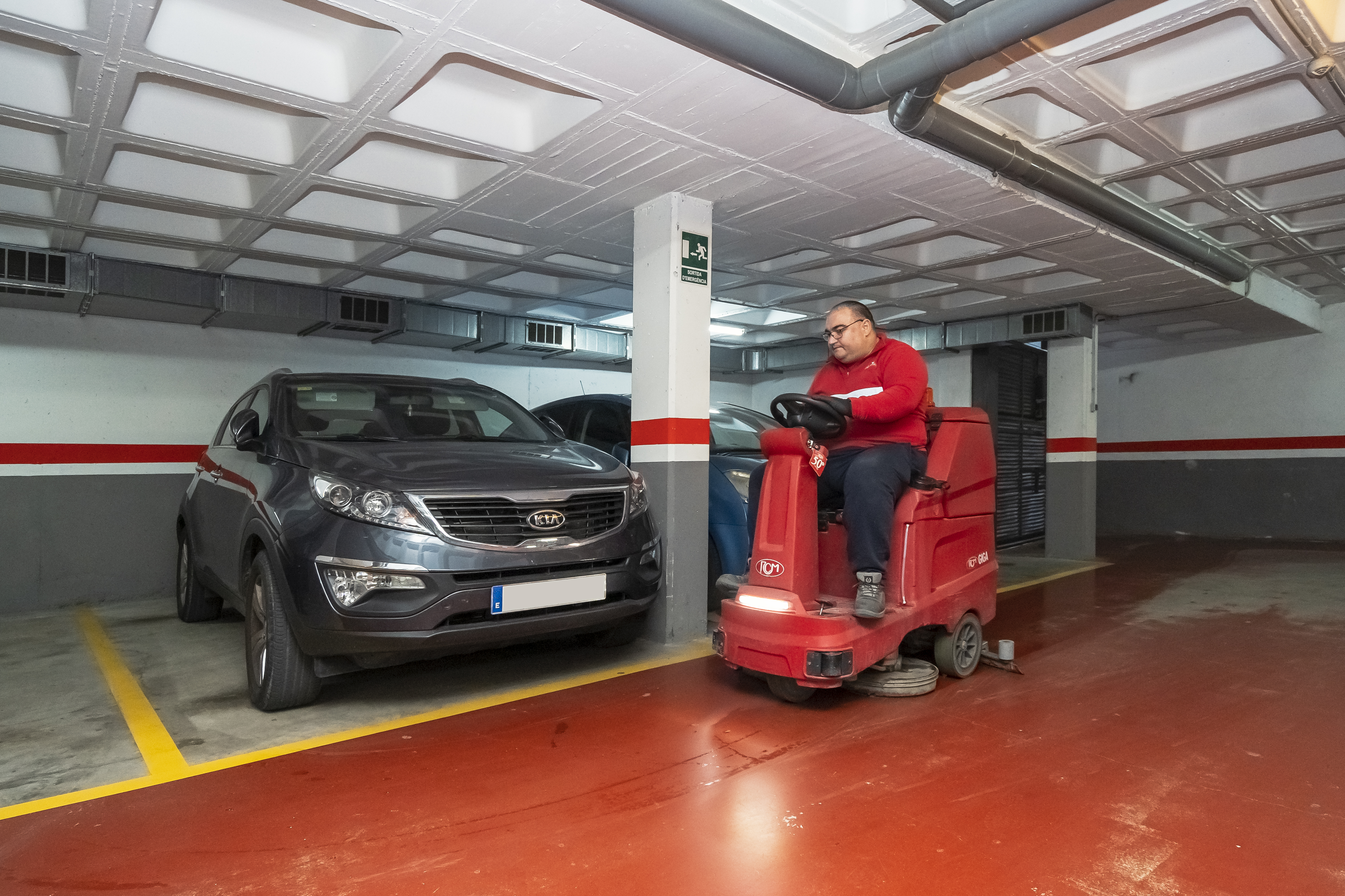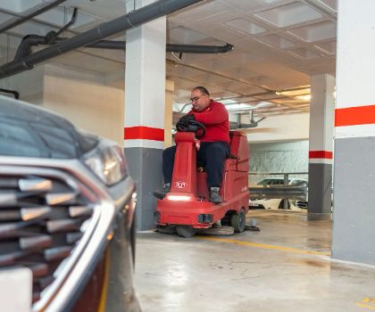 Retiro de residuos, barrido y fregado de suelos para garantizar la limpieza y seguridad de los aparcamientos.